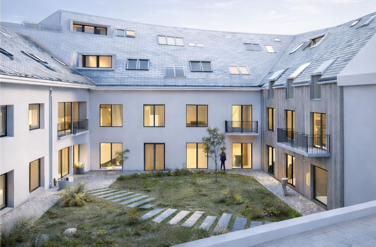 V srdci projektu sa nachádza starostlivo upravený vnútroblok so zeleným átriom, ktoré vytvára príjemné miesto na relax a rodinné chvíle.
